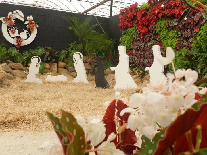 Poinsétias, begônias, kalanchoes, tuias, lírios e antúrios espalham elegância e charme pelos espaços, entre as decorações que primam por materiais sustentáveis, como o móbile de borboletas biodegradável, o presépio feito de EPS (isopor), produto 100% reaproveitável, ou o painel que sustenta 700 plantas, produzido em isopor para poder ser reutilizado em outras oportunidades. O conceito do “Jardins em Festa” focou na criatividade e na simplicidade, em detrimento do luxo, para lembrar o verdadeiro sentido do Natal. Os cinco primeiros ambientes foram destinados ao minissítio, outra atração do Natal de Holambra.