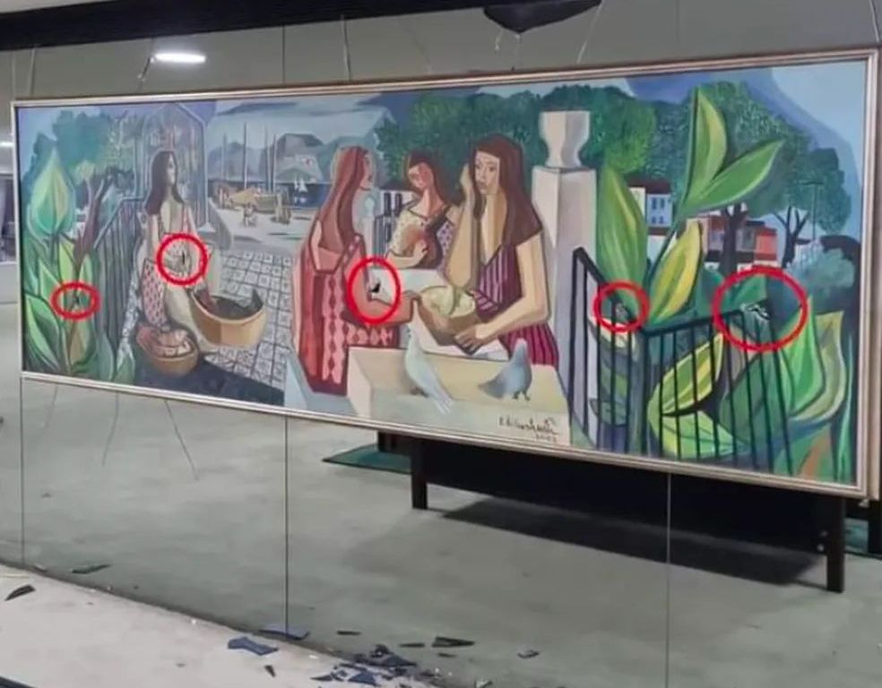 Sem título, conhecida popularmente como “Mulheres na varanda”, a pintura, que estava no Palácio do Planalto, foi perfurada em seis pontos. Foi finalizada em 1962.