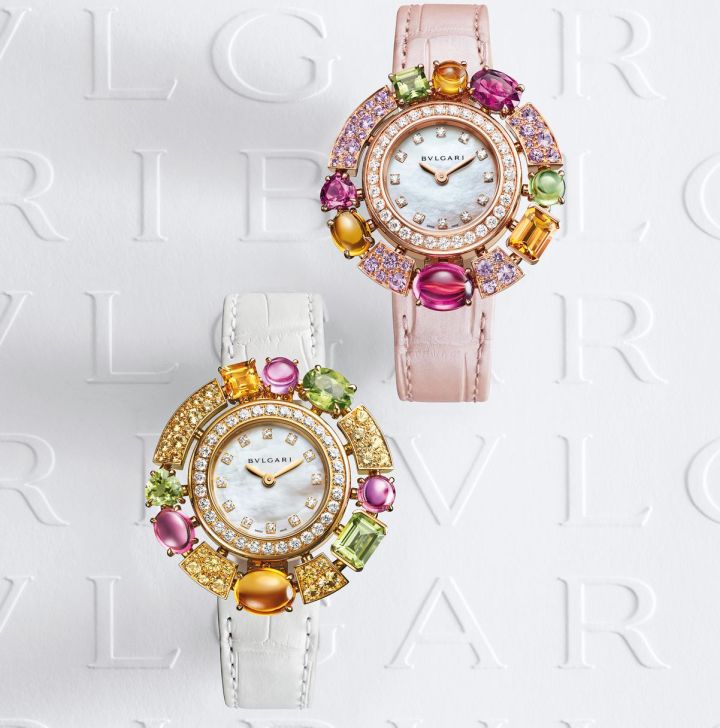 Cores e formas brilham com o desinibido e precioso Allegra. A Bulgari monta um coquetel picante repleto de surpresas e dá vida à ideia de que “O tempo é uma joia”. As gemas – turmalinas, citrinos, rodolitos e peridotos – explodem em uma variedade de formas alegres, associadas a safiras rosas ou amarelas. Tendo feito sua primeira aparição deslumbrante durante o verão de 2022, eles continuam encantando o Sol com sua alegria franca.