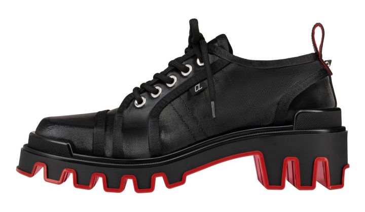 Christian Louboutin aposta no salto alto da linha Aingle para sua coleção masculina.