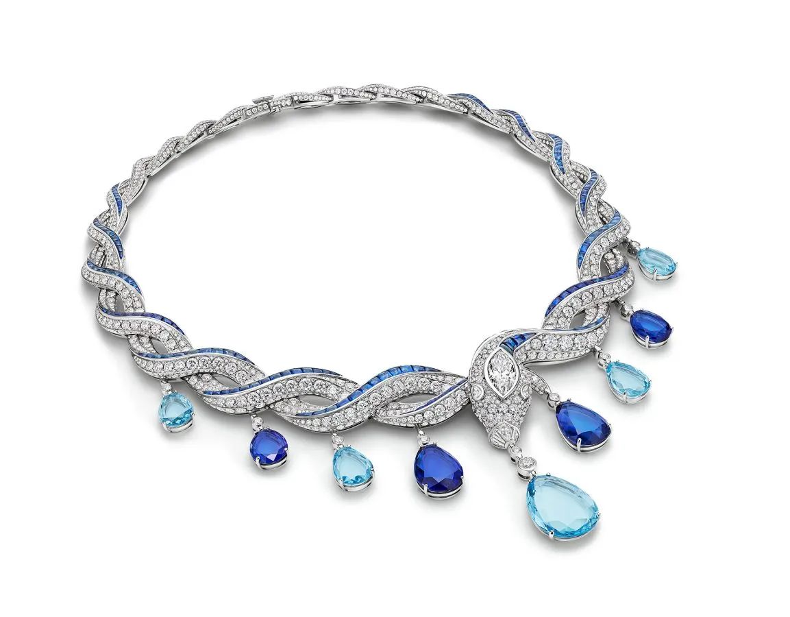 Para a ocasião, será apresentado o exclusivo colar Serpenti Alta Joalheria com brincos combinando, criado exclusivamente para o aniversário. Nomeada Serpenti Blue Heavens devido às cores celestiais de seu layout tanzanita e água-marinha, evocando os céus romano e espanhol, a criação exibe metaforicamente um abraço entre os dois países. Com duas cobras deslumbrantes entrelaçadas, a lenda de Serpenti é retratada através do artesanato visionário de Bulgari e da arte das pedras preciosas em um novo conto de maravilhas.