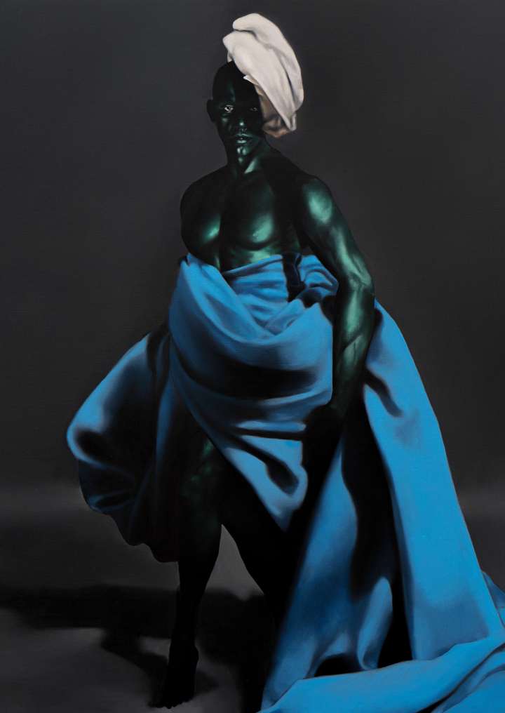 Gustavo Nazareno, (1994, Três Pontas/MG). Vive e trabalha em São Paulo. Autodidata, o artista vem desenvolvendo uma pesquisa pictórica e imagética que percorre os ritos ancestrais africanos e a mitologia dos orixás. Em sua produção, carregada de nuances que extrapolam os temas para além da questão religiosa, o panteão iorubá é reverenciado como uma força epistemológica, de conhecimentos ancestrais e de mistérios.