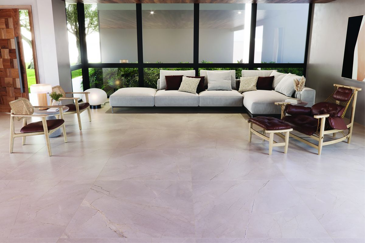Já a linha Pulpis é um porcelanato que remete ao mármore originário da Espanha. Explora a imponência da pedra natural, com nuances cromáticas acinzentadas, com veios delicados que trazem uma sensação de elegância e atemporalidade. Disponível no formato 108X108 cm, com as texturas alto brilho e natural.
