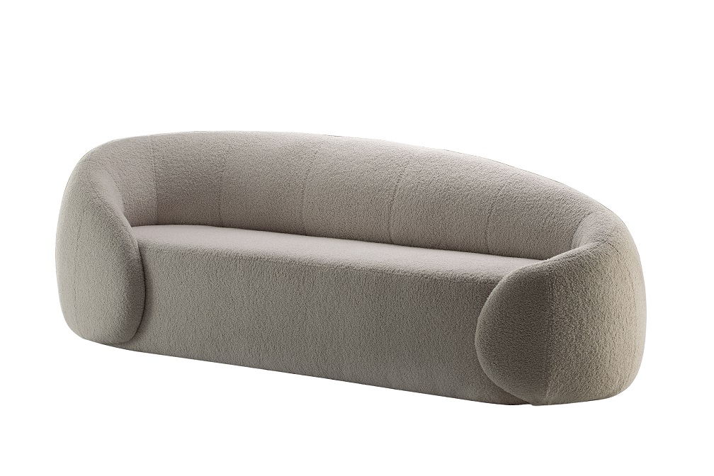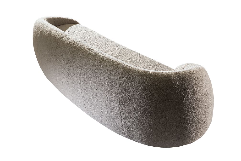 É um sofá curvo repaginado com encosto que não segue uma simetria, o que imprimi à peça modernidade, personalidade e estilo único.