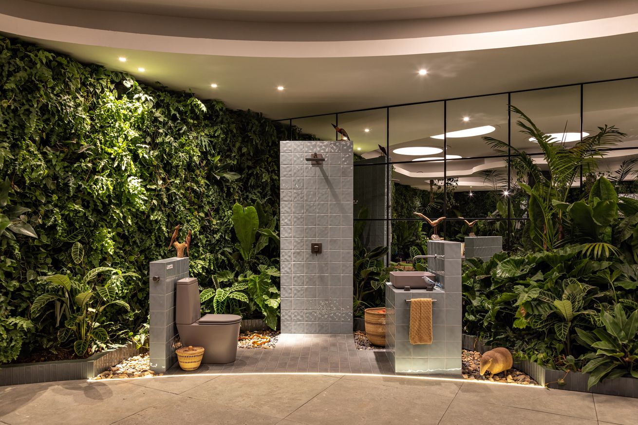 O espaço de 420m2 traz a biofilia brasileira e a estética acolhedora de revestimentos das marcas Portinari e Ceusa, além de piso Castelatto em tons de verde, como cenário que abraça a temporalidade e promove experiências sensoriais movidas por ações cíclicas. Dia e noite são representados pelas transições de iluminação e sonorização, e despertarão bem-estar, como um convite a reflexão sobre a importância da integração da natureza com o design e a funcionalidade nas moradias.