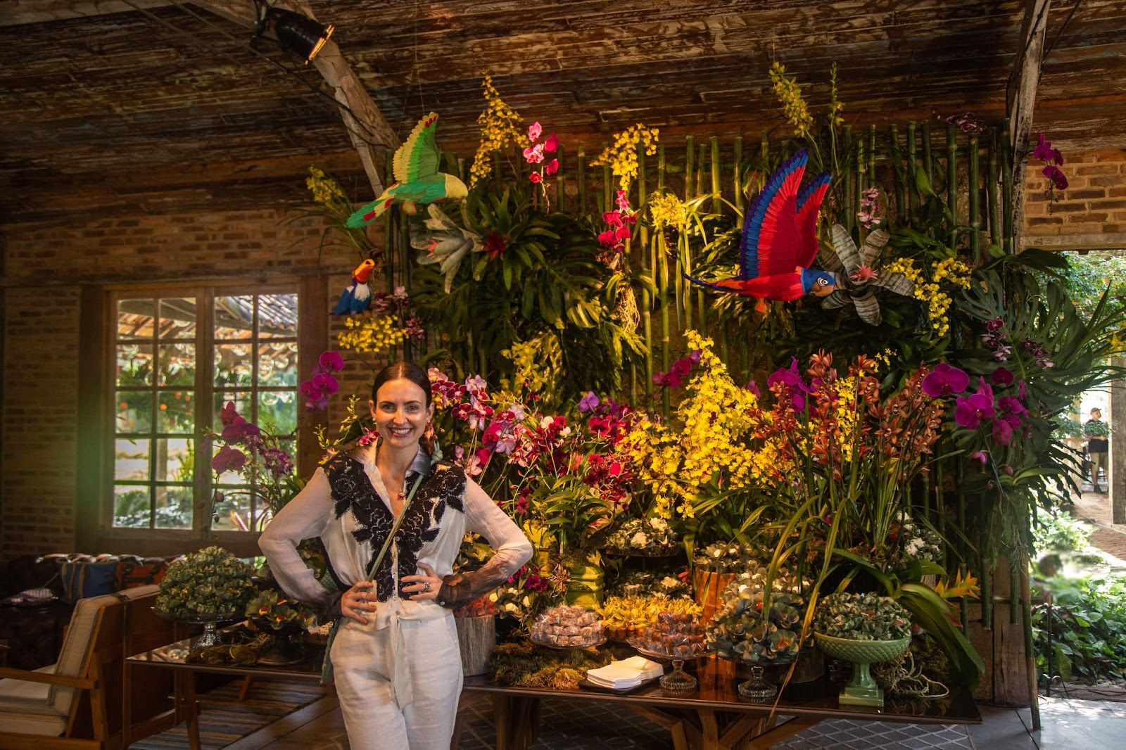 A decoradora sempre aposta na diversidade da flora brasileira, que é um dos destaques principais quando se fala brasilidade. Orquídeas e bromélias são tipos de flores perfeitas para centros de mesa e cantos do salão de festas.