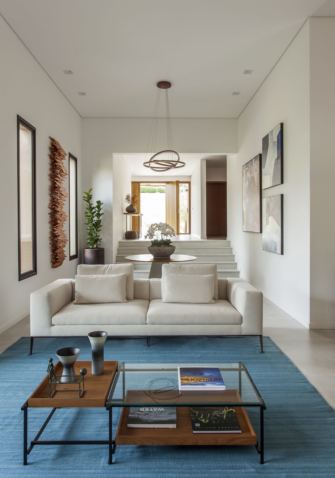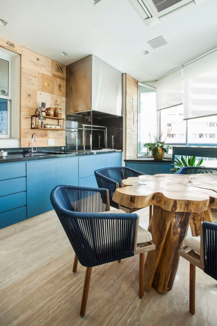 Tanto o tom como a quantidade de azul, e onde ele será colocado, devem passar por uma análise cuidadosa. Tudo vai depender do desejo e personalidade do morador: caso a vontade seja de esbanjar calmaria, as opções são pintar uma parede ou investir em marcenaria totalmente nesta cor. Por outro lado, se é uma pessoa que muda de ideia muito rápido e está sempre renovando pequenos detalhes da casa, o melhor caminho são os acessórios.