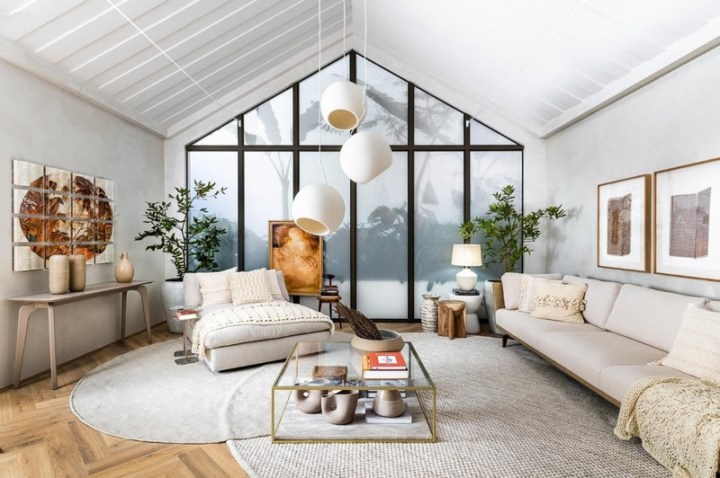Com 55 m², o espaço se divide em entrada, área de trabalho — com mesa, torno e pia —, copa/bar e estar. Na paleta, branco, off white, bege, nude, marrom e terracota criam uma atmosfera serena, ideal para refletir e estimular a criatividade.