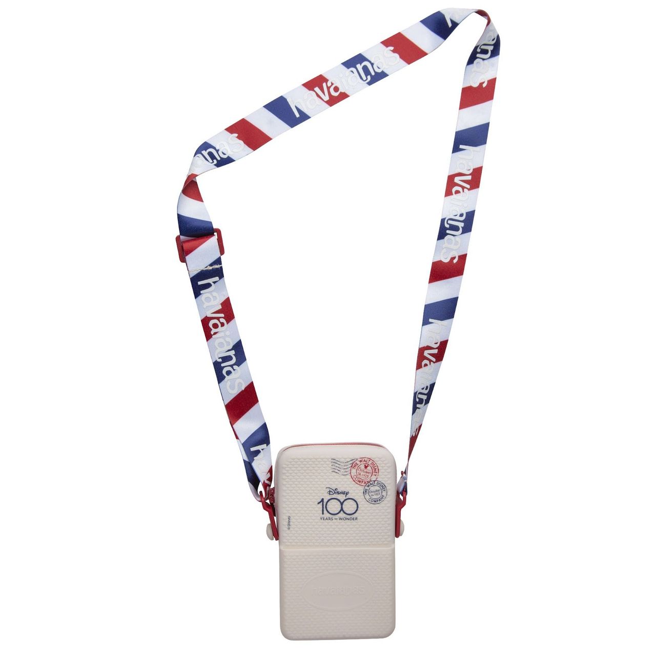 A Shoulder Bag Havaianas Disney 100 é feita com 100% silicone e no tamanho perfeito para carregar os itens essenciais, com o charme da Disney. Além da alça tricolor, que pode ser usada transpassada, no ombro ou como pochete, a peça tem uma pequena estampa com selos da Disney que remetem à criação da companhia, em 16 de outubro de 1923.