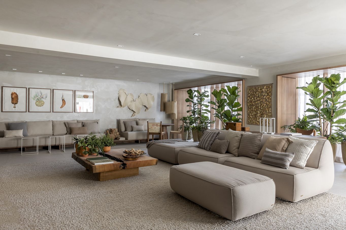 Em 76m², trouxe materiais que foram escolhidos cuidadosamente para promover a melhor experiência ao visitante. Elementos naturais como lã, juta, algodão, barro, palha, entre outros, para compor uma estética delicada e agradável por meio de texturas que convidam ao toque. Além das peças naturais, o artesanato nacional também protagonizou, reforçando a proposta de retratar a brasilidade com sofisticação e elegância.