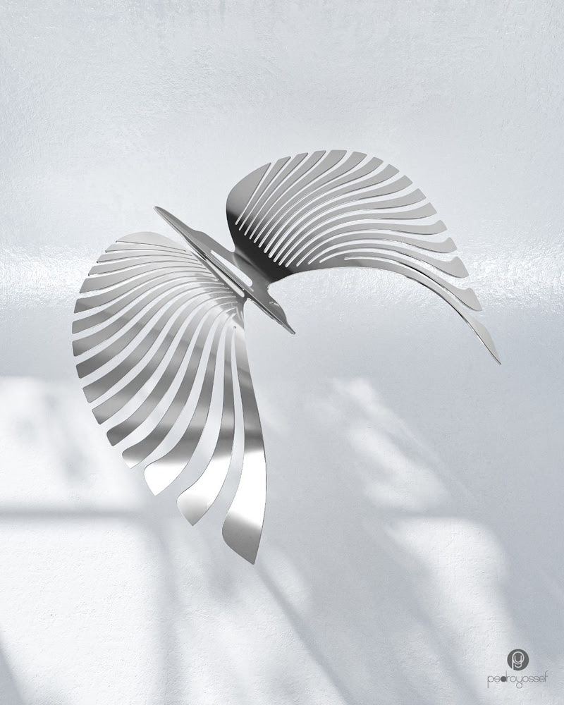 Durante todo o processo de criação Pedro se inspirou na liberdade e plasticidade de movimentos dos pássaros, com o objetivo de conseguir dar a sua peça a fluidez desejada em todos os ângulos com uma visão tridimensional.