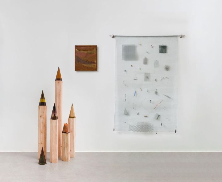 Entre as 17 obras expostas, discussões sobre a contaminação do Rio Doce por lama tóxica após rompimento das barragens em Mariana (MG) como ‘Mais nascimento que morte, Mais rio que resíduo, Mais montanha do que minério, Sertão Doce”. Já ‘Falar com estranhos’ são títulos de obras que exemplificam o jogo de palavras e conceitos abordados pela artista.