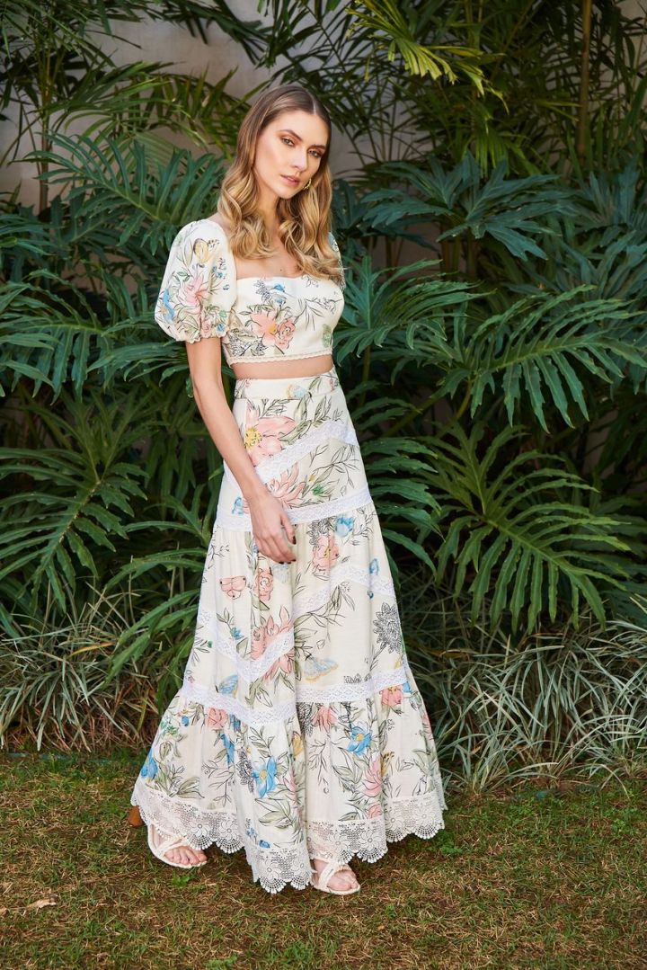 Para esta temporada, ela inova com a atribuição de estampas em linho e seda, que traz muito frescor e delicadeza aos visuais de primavera e verão.