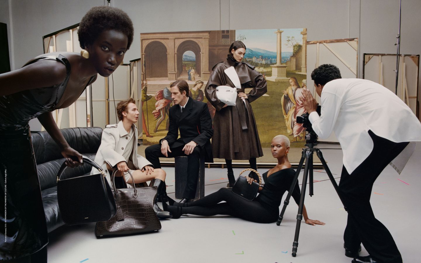 Ao colocar musas, amigos e membros de sua comunidade criativa diversificada vestindo alfaiataria afiada e terno requintado, com tecidos ricamente texturizados, materiais e cores ousados, a bolsa Hug e os arquivos inspiraram a sandália dourada no contexto de trabalho de Bellini, Veronese e Botticelli, Davis criou um diálogo entre o passado e o presente, onde ambos os espíritos da Renascença e do mundo luxuoso do século 21 foram lançados em diferentes relevos em sobreposição.