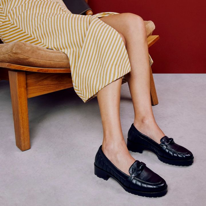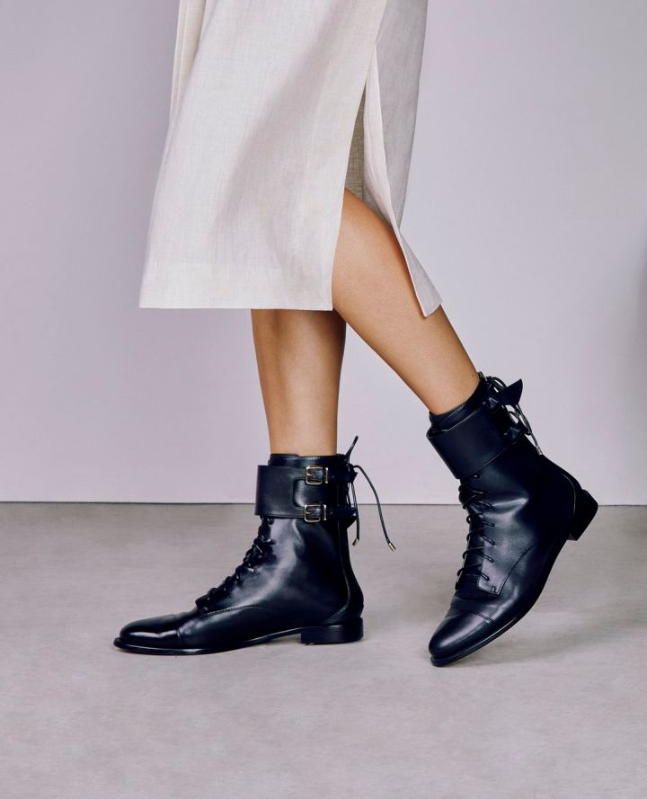 Ainda com o laço Clarita, a coleção apresenta a nova flat bailarina clássica, a bota de bico arredondado Chelsea 60, a bota tratorada Clarita Combat e a nova bota assimétrica Clarita Boot, além de loafers em couro e slides em camurça.