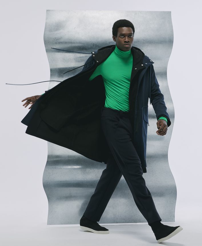 Uma coleção feminina e masculina, ageless, formas statement do outerwear. Parkas, camisas como jacket, vestidos que podem funcionar como túnica ou veste, top em gola alta, calça ampla de alfaiataria, “tudo para ser usado oversized”, é uma maneira de ser”, define Gloria Coelho.