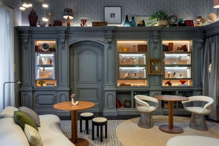 Os efeitos decorativos em tetos e paredes também seguem em alta: ombré, cimento queimado e o exclusivo velvet da Coral – que confere um resultado aveludado às superfícies -, são vistos em vários espaços. Um deles é a Joalheria. Ali, Andrea Duarte e Anna Malta apostaram na cor Estante Antiga para dar o clima à loja, que ocupa um dos salões principais da Residência Brando Barbosa, onde a mostra acontece pelo terceiro ano consecutivo.