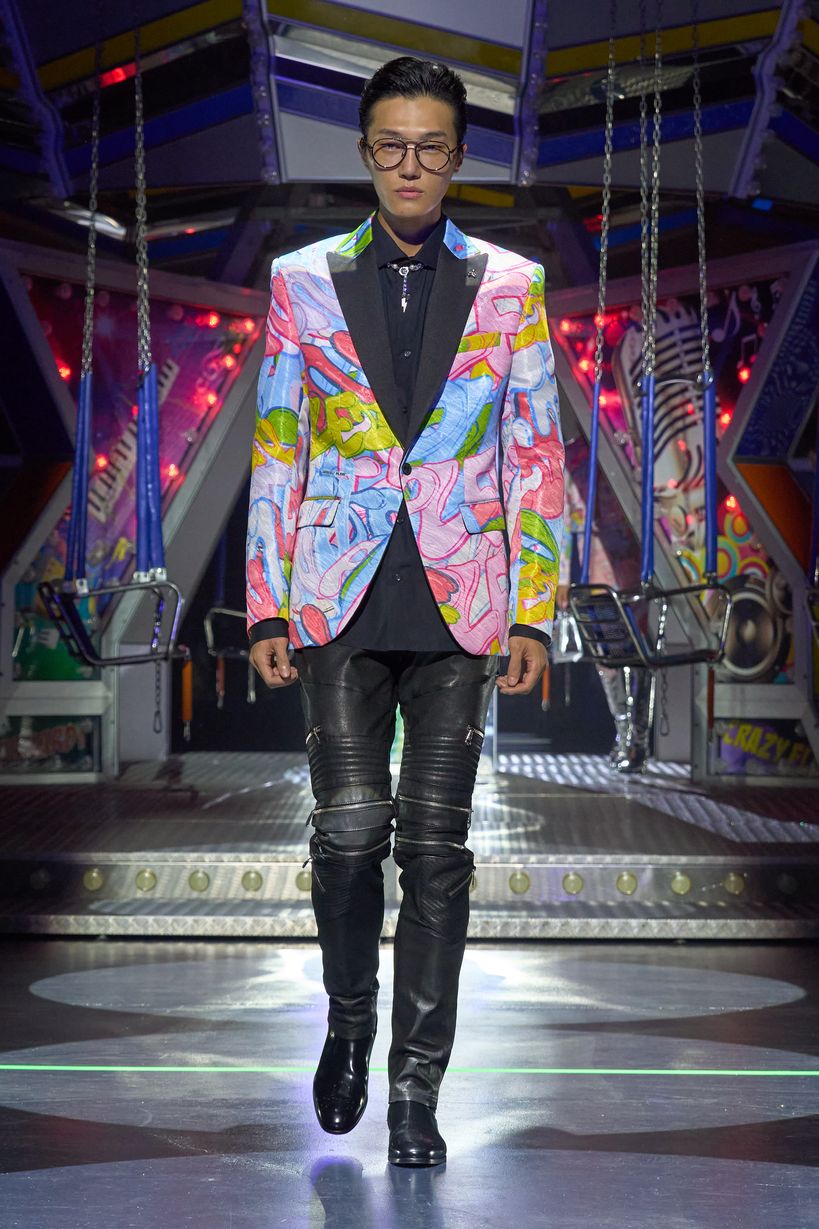 A marca Philipp Plein apresentou sua coleção Summer 2024 na Semana de Moda de Milão com forte pegada do underground dos anos 80.