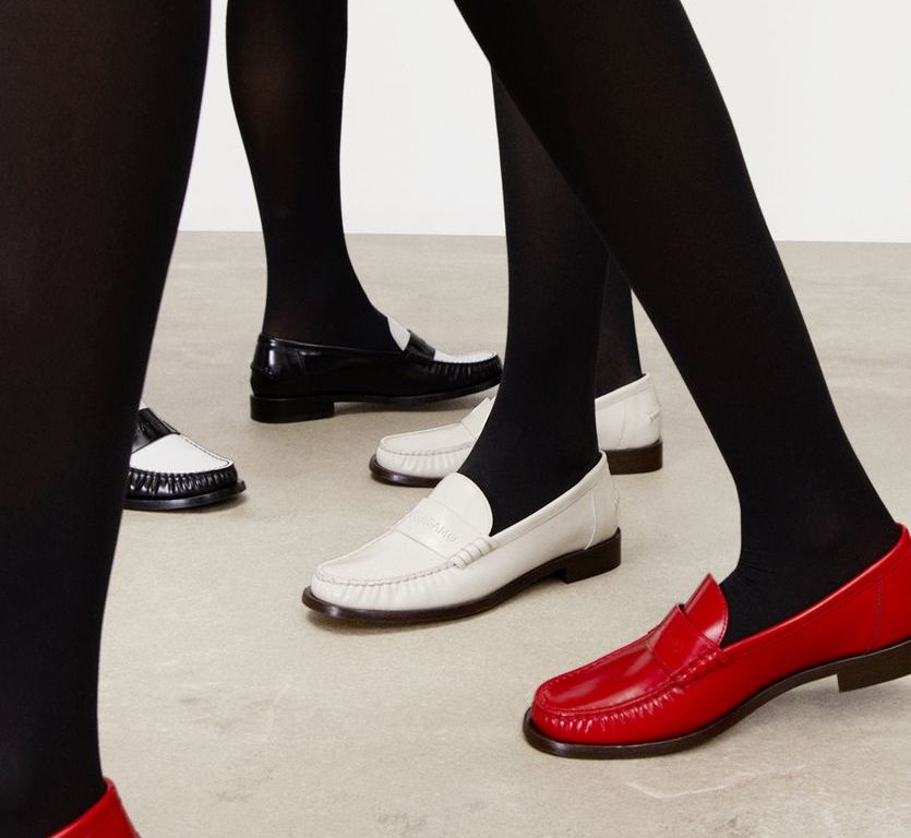 Os mocassins vêm em uma variedade de cores, com o estilo todo preto tendo um interior vermelho vibrante contrastante. Os demais estilos vêm no mascarpone monocromático branco, preto e branco, vermelho e prata com sola de cuoio marrom que iluminam qualquer look outonal com um toque inesperado.