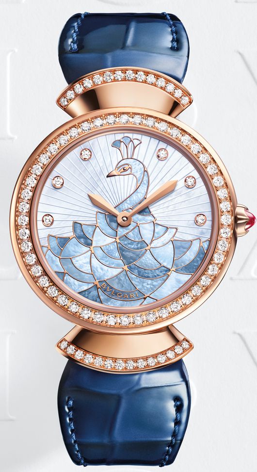 O Pavão ou Pavone irradia beleza e confiança através das nuances sedosas de suas penas na coleção Divas’ Dream Peacock da Bulgari. A ave arqueia suas penas em uma roda – uma infinidade de arabescos e curvas muito valorizados no repertório estilístico da Bulgari, reminiscentes dos desenhos em mosaico das Termas de Caracalla.