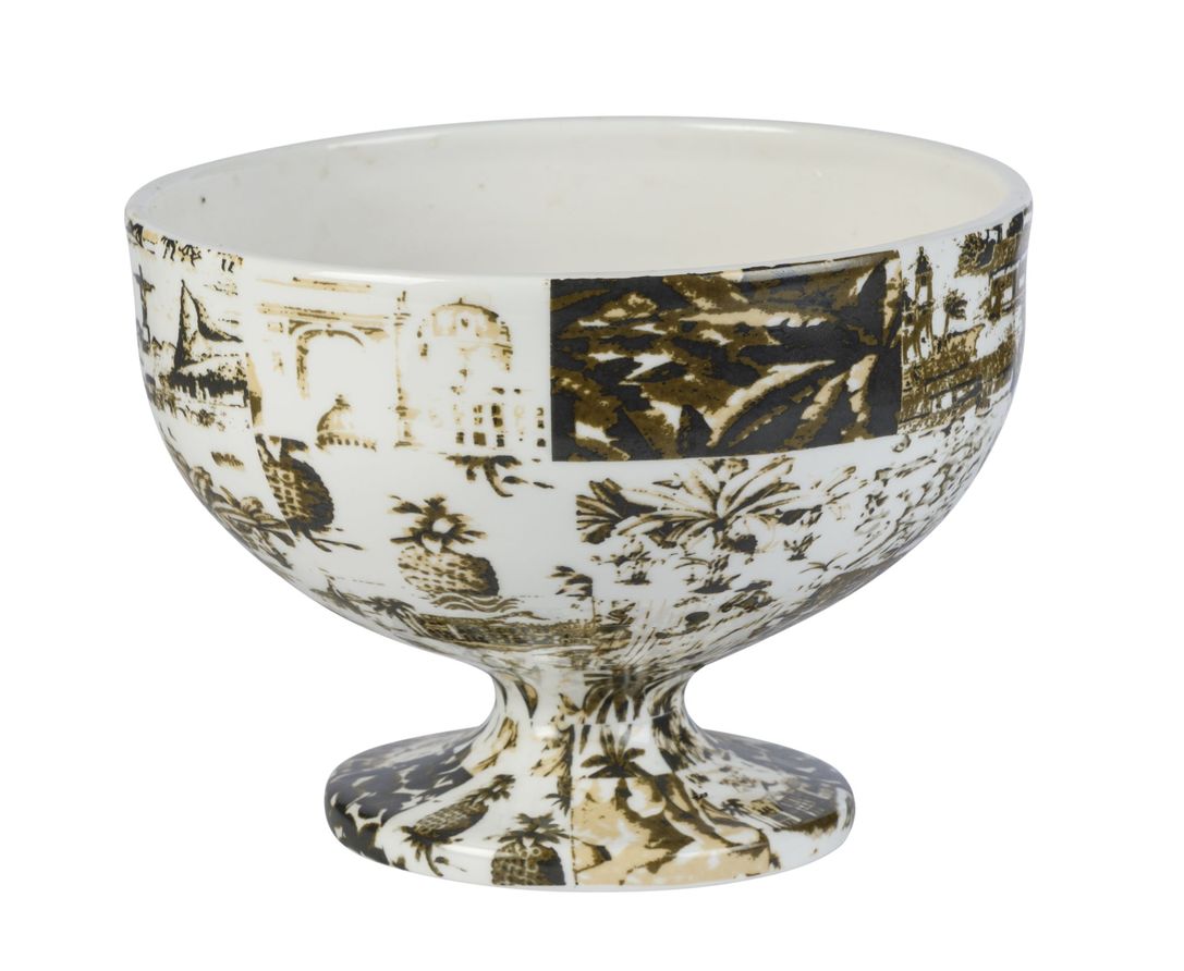 As peças de porcelana de volumes clássicos – potiche, centro de mesa, caixa e vaso – foram estampadas com desenhos em referência no trabalho artístico do designer Attilio Baschera. O designer de interiores revolucionou a decoração de interiores nas décadas de 70 e 80, ao lado de Gregório Kramer, por meio de estampas coloridas, artísticas e cheias de elementos bem brasileiros, que preencheram as casas da elite paulistana na época da consagrada loja Larmod.