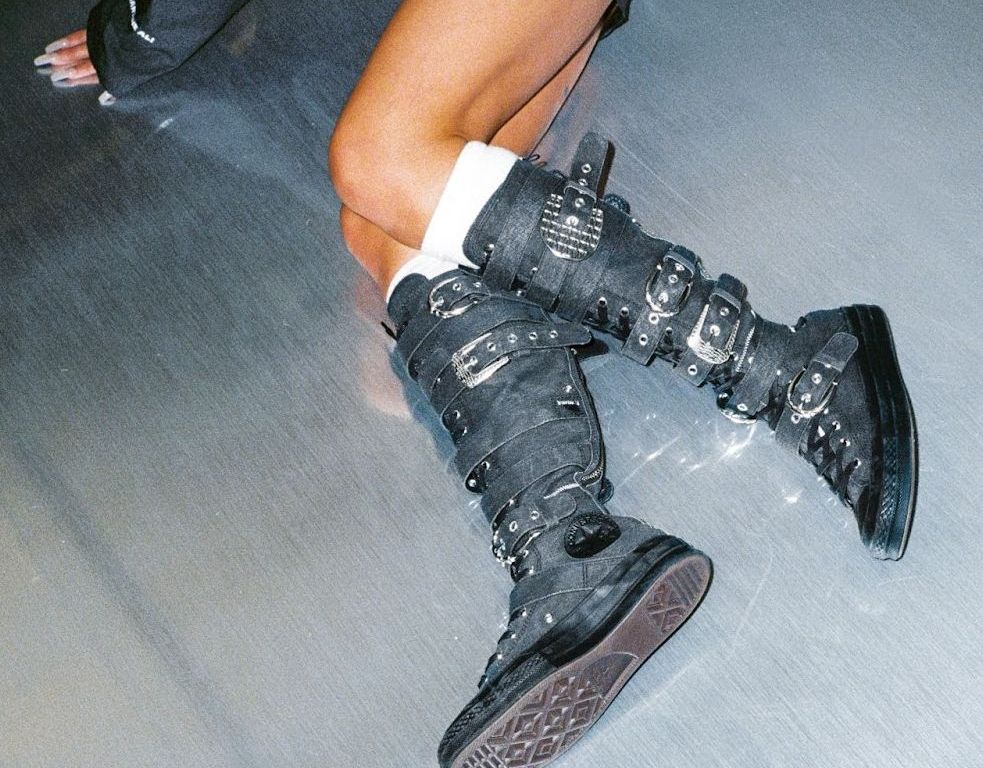 Com o Chuck 70 como base, o Converse X Martine Ali Chuck 70 XXHi apresenta uma parte superior alongada que chega até o joelho. O estilo pessoal da designer se reflete nas sete tiras e nas fivelas que personalizam o par, remetendo aos acessórios exagerados que definiram a moda nos anos 2000, além de permitir ajustes na largura da silhueta e um zíper na parte de trás garante um calçar mais fácil.