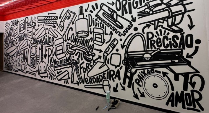 “Deixei de lado a padronização e o rigor dos desenhos técnicos, super comuns nessa área, para dar espaço a uma representação das ferramentas de forma mais lúdica. A arte traz o dinamismo das setas que direcionam o olhar do espectador em uma área quase 100% preenchida pelos desenhos”, destaca a artista.