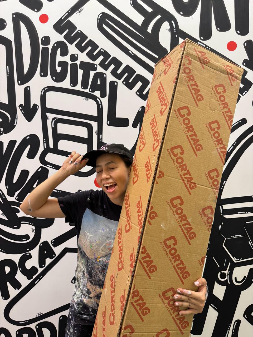O mural foi pintado em uma parede com mais de 8 metros de largura e 3 metros de altura no ambiente do patrocinador master do evento, a Cortag.