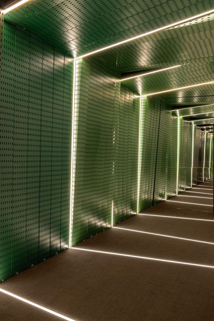 As eletrocalhas pré pintadas da Si do Brasil foram personalizadas para os ambientes no qual estão inseridas e, além disso, tiveram usos completamente diferentes do tradicional, formando pórticos no Hall de entrada e um Brise de efeito na Sala de Reuniões.
