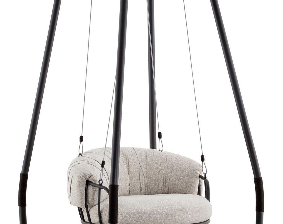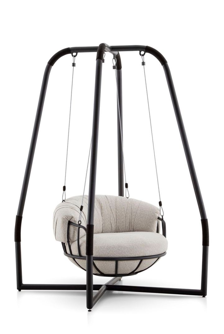 Ainda para a série Elementos, Roberta desenvolveu a cadeira Linhas e o balanço Mellow. Com estrutura tubular, Linhas é composta por curvaturas e traços essenciais para a ergonomia do produto. Seu assento e encosto são revestidos por corda bouclé para área externa, um acabamento exclusivo, desenvolvido pela Green House. O balanço Mellow, por sua vez, vem para completar linha lançada na edição passada do Isaloni. Com linguagem contemporânea e acolhedora, o balanço tem uma linguagem e design que exaltam o feminino, a jovialidade e tudo aquilo que é suave e aconchegante.