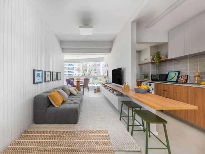 Por fim, Júlia alerta para a consideração de cantinhos aconchegantes e que podem ser compostos por almofadas confortáveis, velas perfumadas e uma música suave. “Nos projetos, eu considero muito bacana que as pessoas tenham um cantinho mais reservado para momentos de introspecção. Atividades como ler ou rezar nos convidam a olhar para dentro e desacelerar”, conclui a arquiteta.