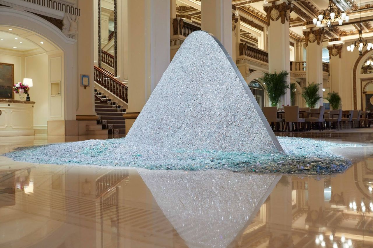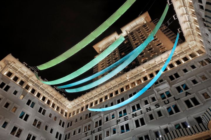A exposição do The Peninsula Hong Kong inclui uma escultura do artista local Kingsley Ng, que paira sobre a icônica fachada do hotel.
