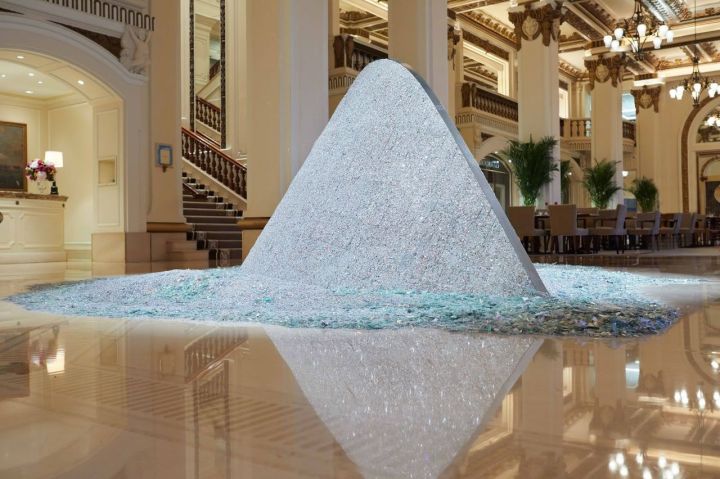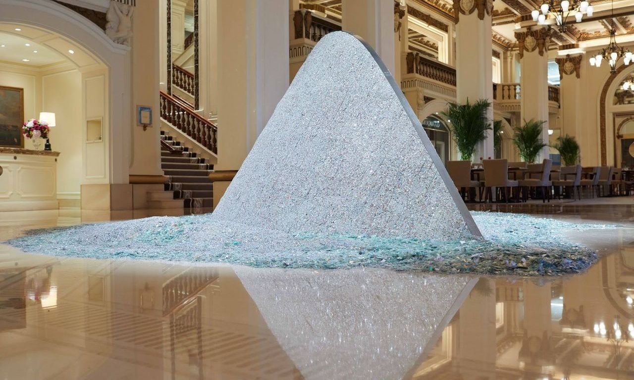 A obra escultural reluzente “SOLI”, da francesa Elise Morin, originalmente comissionada em 2019, também foi expandida pela artista especialmente para esta exposição em Hong Kong. A obra foi ampliada com mais de quatro mil CDs triturados. A peça de Morin, que se assemelha a uma baleia rompendo a superfície do oceano, é um comentário sobre o fardo material dos objetos.