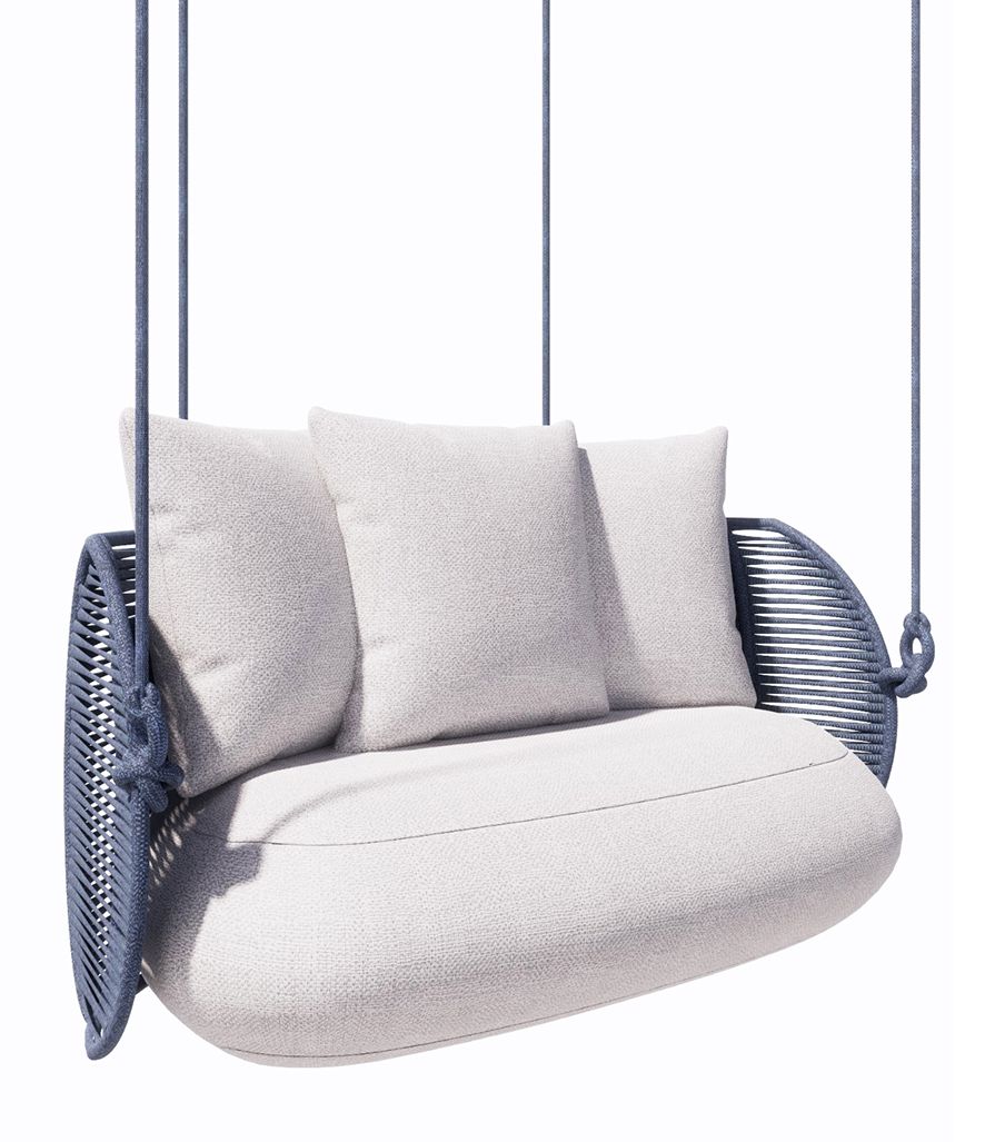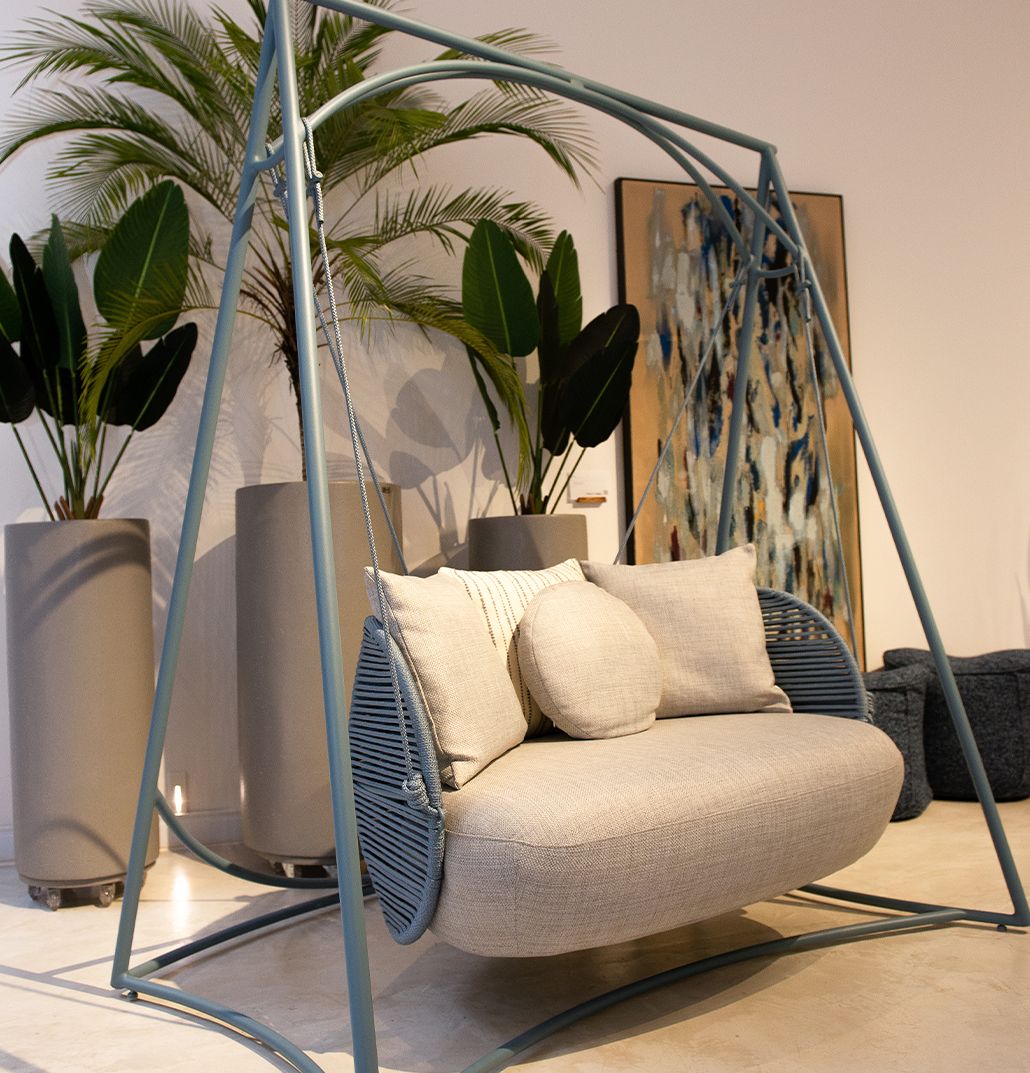 A cadeira, o balanço assim como as demais peças que compõem a Coleção Perlage, são produzidas com materiais náuticos de alta resistência, que proporciona o uso tanto dentro quanto fora de casa. A espuma é ‘dry foam’ que repele a chuva e seca em duas horas de sol. O tecido que reveste é do tipo bouclê para áreas externas, resistente às intempéries e cloro da piscina, assim como sua estrutura em alumínio, material ecologicamente correto.