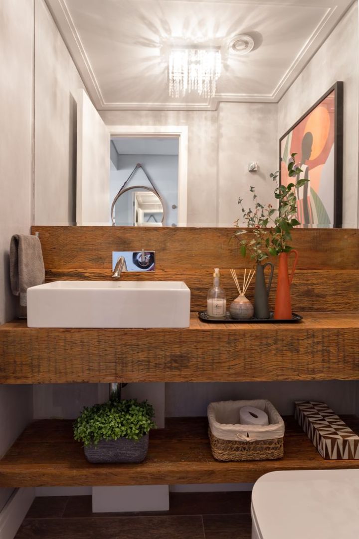 As características da madeira de demolição expõem o seu aspecto duradouro e essa é uma das razões sempre consideradas pela profissional. “Ela madeira consegue suportar o contato com a umidade, nos abrindo a possibilidade de considerá-la inclusive em banheiros e lavabos”, ressalta.