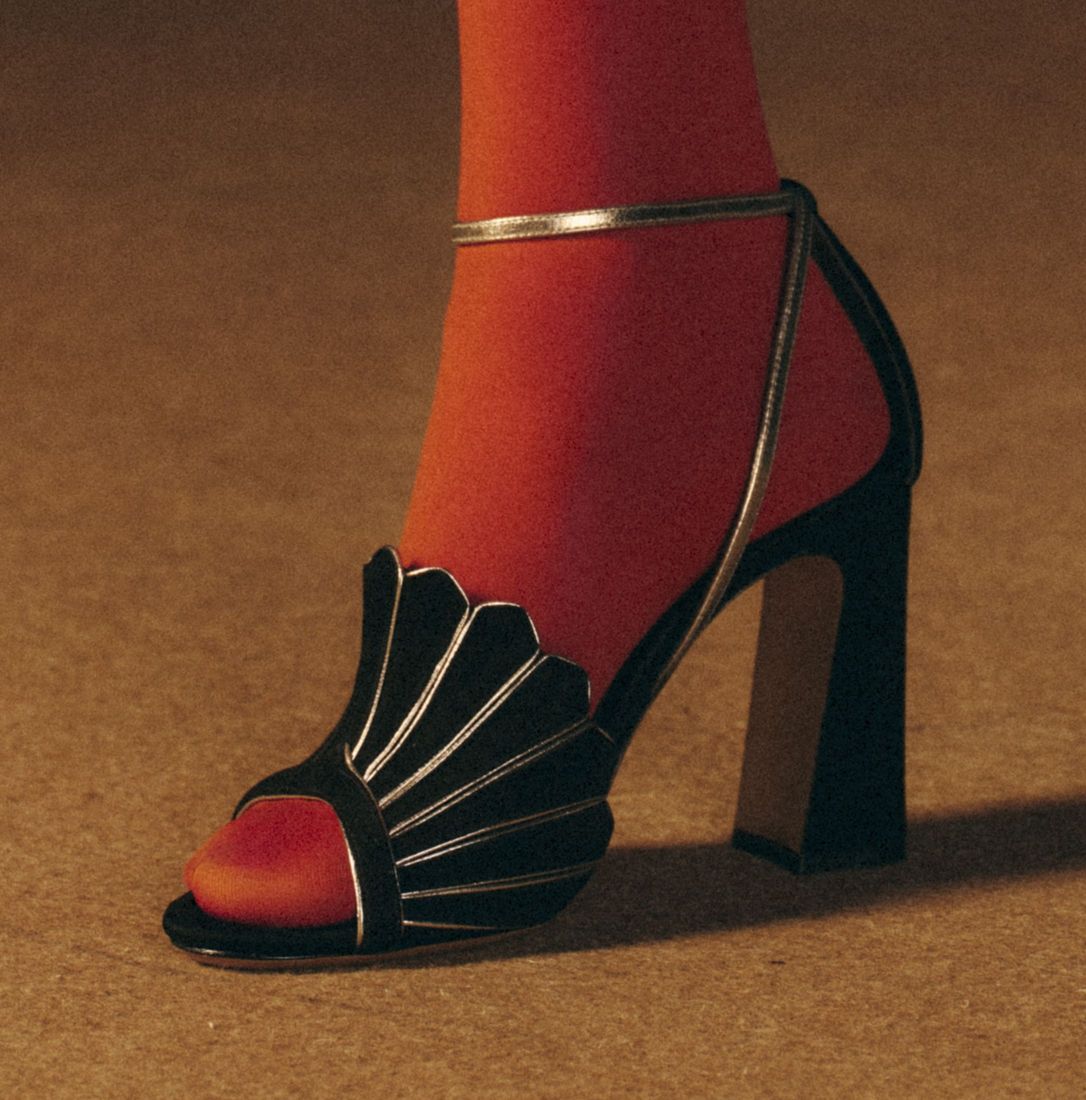 Formas angulares são destaque no modelo Wilma, uma representação ousada e sinuosa do movimento Art Déco. Trabalhada no suede, as peças apresentam linhas curvas, detalhes em couro metálico e cada arco se entrelaça criando uma fusão harmoniosa de brilho artístico e trabalho artesanal.