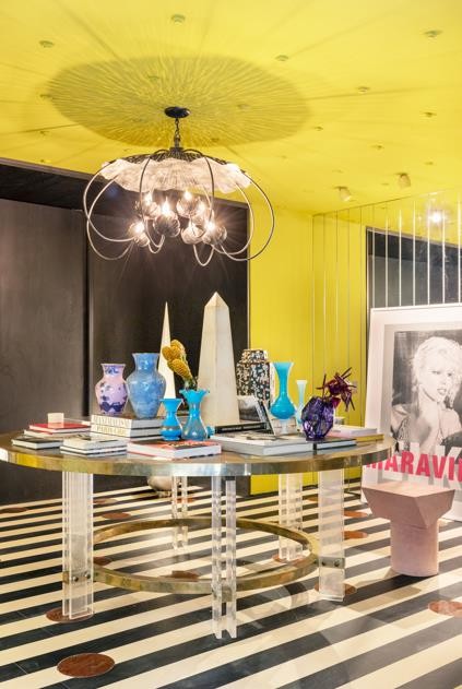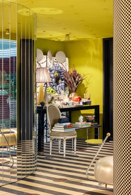 Com 44 m2, o Hall de Entrada se equilibra entre o eclético e o estético. Ao entrarem, os visitantes são envolvidos por uma paleta eufórica, com destaque para a cor Amarelo Pantanal aplicada com um compressor para um sutil efeito rústico e opaco que reveste das paredes ao forro. Essa vivacidade tornou-se um contraponto com o piso de tauari bicolor (de madeira ebanizada e clareada) e os círculos de mármore Napoleon Bordeaux – Michelangelo, que constituem movimento e dinamismo, além de fazer uma referência à estética encontrada em locais históricos, convidando os espectadores a explorarem cada centímetro do espaço com curiosidade e admiração.