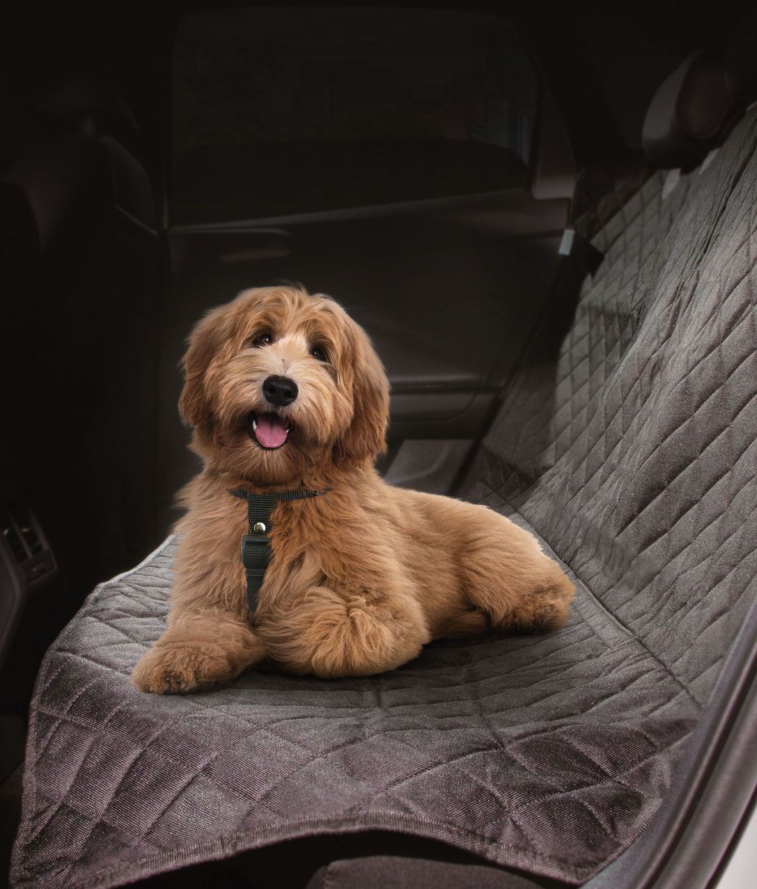 Proteção de assento – Em dois modelos, com e sem bolso, o acessório é instalado nos assentos traseiros do carro. O item foi desenvolvido com foco na higiene dos bancos, protegendo contra o acúmulo de sujeira e pelos, e para impedir que o animal se mova para o banco dianteiro.