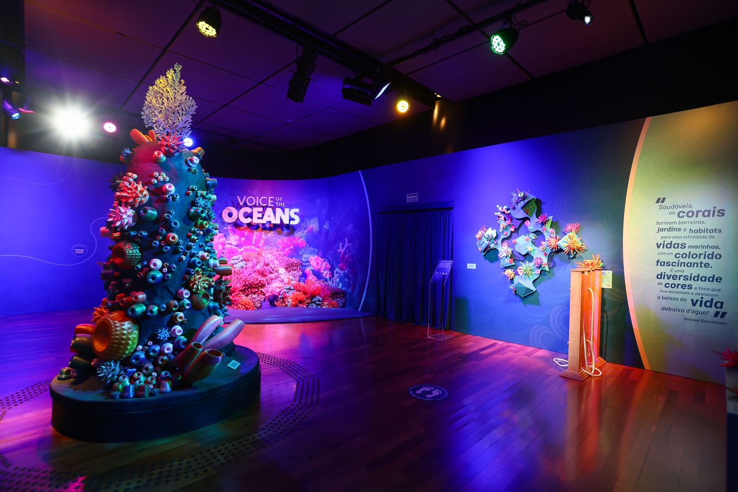 A Exposição Voz dos Oceanos acontece até 20 de agosto no Piso 3 do JK Iguatemi, em São Paulo. A Família Schurmann é a anfitriã da exposição na capital paulista.