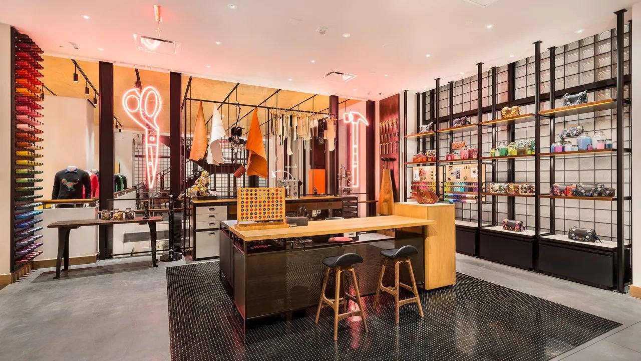 Na operação, os clientes podem explorar uma ampla seleção de coleções femininas e masculinas, incluindo bolsas, acessórios em couro, cintos, lenços e perfumes.