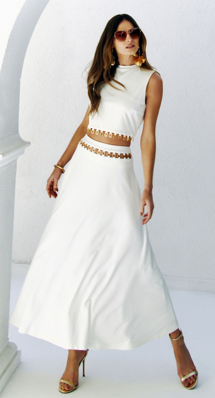 Além disso, a coleção inclui o jeans, que surge reinventado, confeccionado em 100% algodão e adornado com bordados exclusivos. O clássico denim ganha nova vida com esses detalhes refinados aplicados nas saias e tops, que elevam a peça a um novo patamar de elegância.