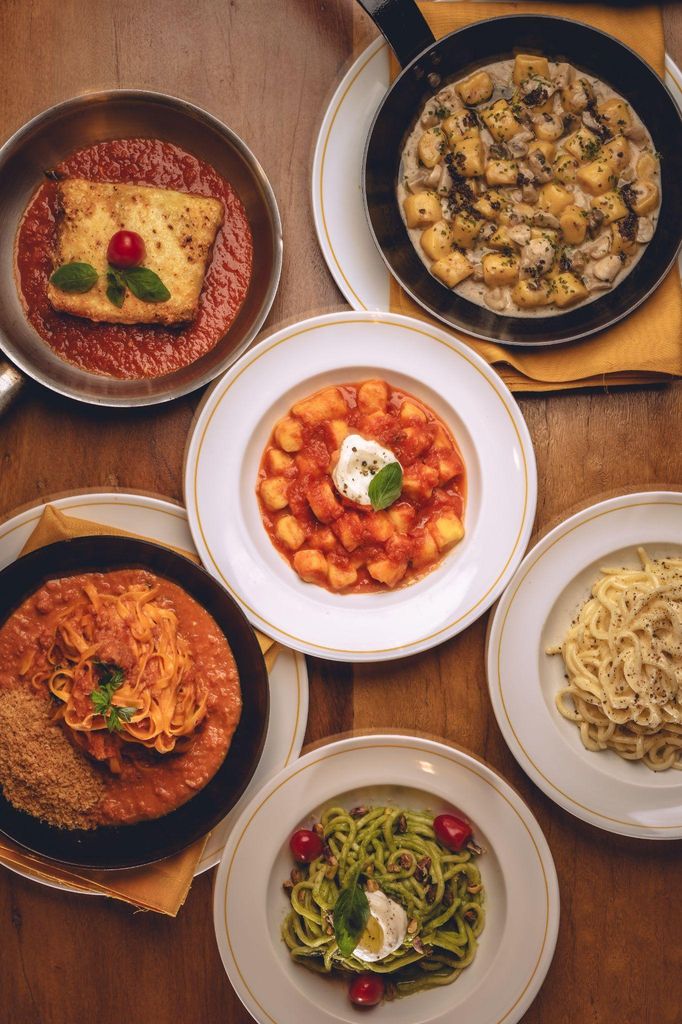 O menu inclui também uma variedade de entradas e sobremesas para complementar a experiência. É o caso da famosa Burrata fresca, servida com tomatinhos assados, pesto de manjericão e tapenade de azeitonas; e o Melanzane alla parmigiana, rolinhos de berinjela, muçarela e pesto de manjericão regadas com molho pomodoro e gratinadas com parmesão.