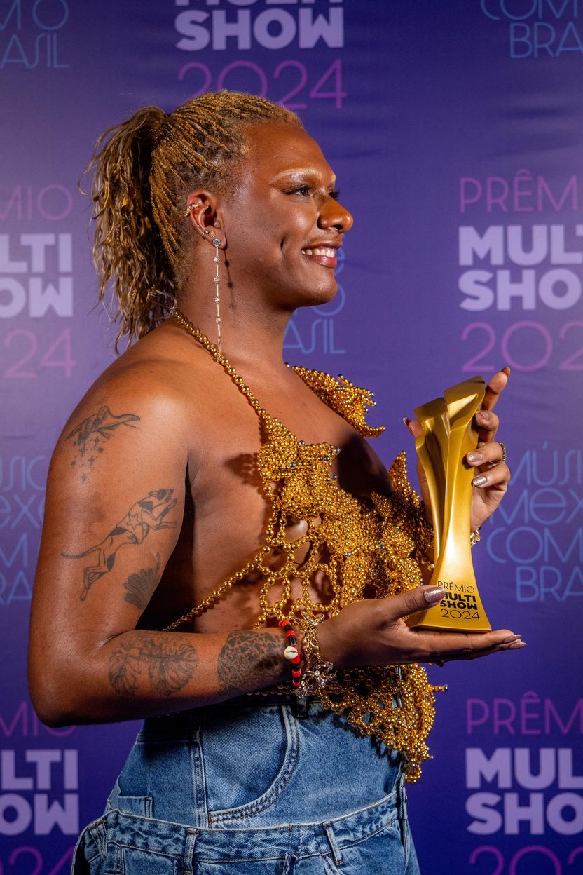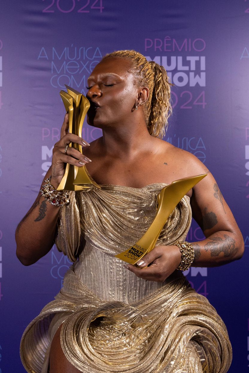 “Eu agradeço imensamente pela possibilidade de ser ouvida na realidade de um país que silencia e amordaça de forma transparente tantas pessoas, sentimentos, realidades, como a que molda quem eu sou. E que sempre só pensou em sonhar e poder se nutrir do próprio sonho, mesmo sendo o Brasil essa imensidão potente e exclusiva que somos”, discursou Liniker ao ser consagrada como Artista do Ano.