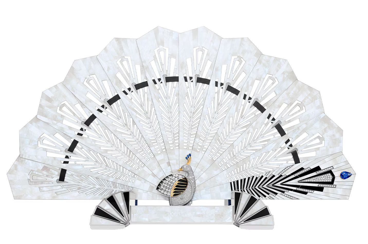 Um mundo mágico onde as fantasias ganham vida, a coleção Marvelous Creations de Harry Winston apresenta o Marvelous Peacock, uma peça de alta joalheria, que combina um leque de mão funcionou, um relógio secreto oculto pelas elegantes penas de um pavão e uma base para montá-lo como um relógio de mesa.