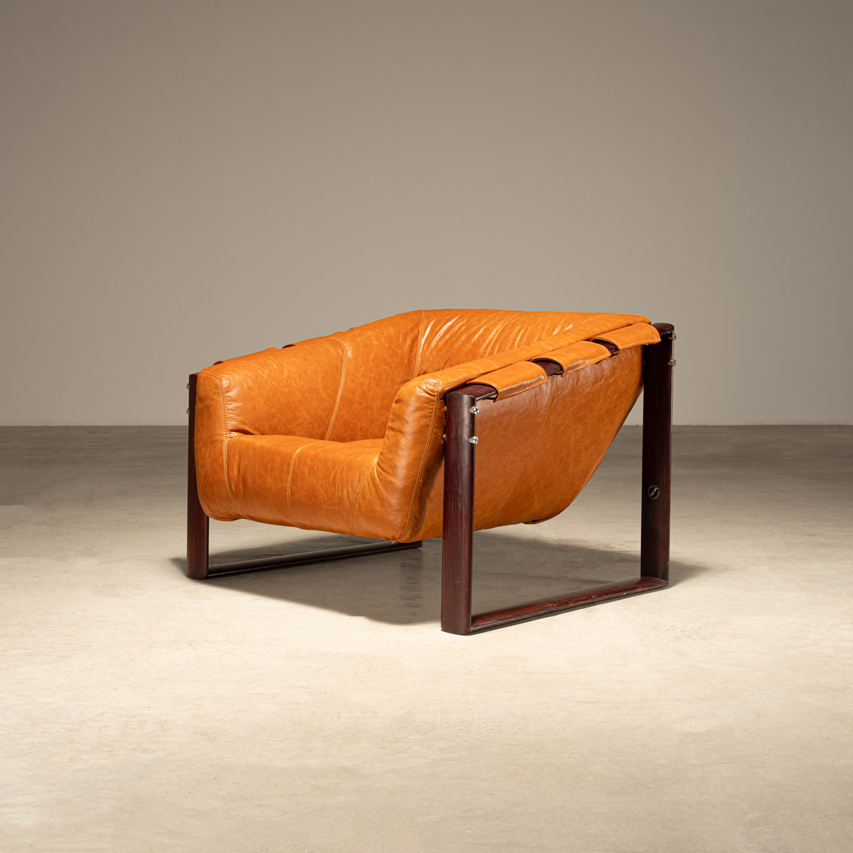 A poltrona M-127, projetada por Percival Lafer em 1973, traduz em sua estrutura de madeira um equilíbrio primoroso entre linhas retas e materiais naturais, representando com vigor o espírito modernista brasileiro, sutilmente robusto e ao mesmo tempo sofisticado.