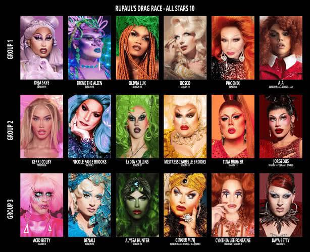 RuPaul’s Drag Race faz história ao apostar em 18 competidoras para a temporada do All Star 10, que estreia com dois episódios na sexta-feira, 09 de maio, no WOW, Paramount+ e MTV. Ganhou o título de Torneio All Stars.