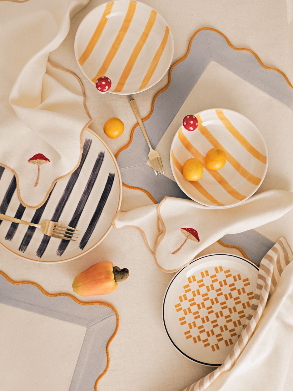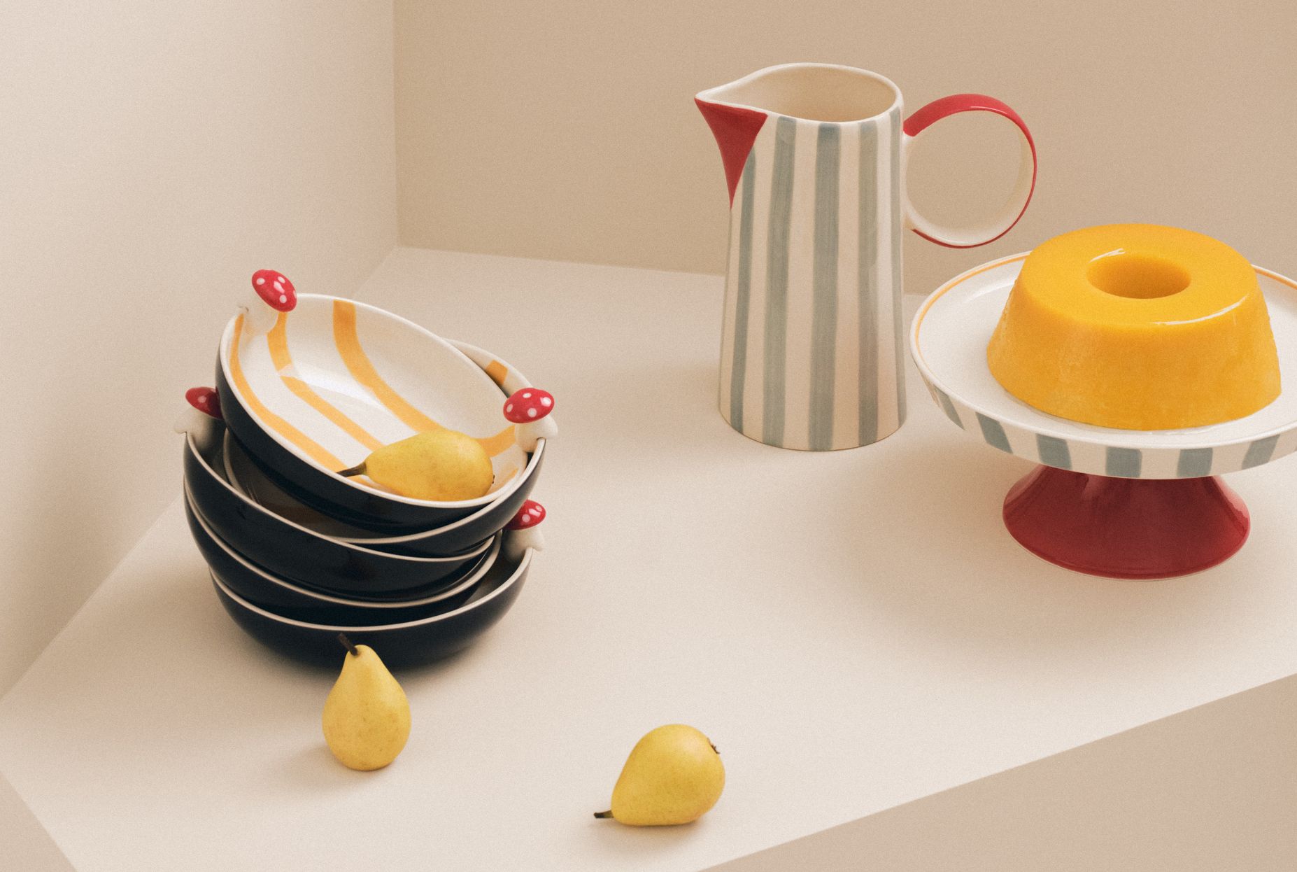 Para além das roupas, a parceria traz uma linha de itens para a Casa Riachuelo, com artigos em cerâmica pintados à mão.
