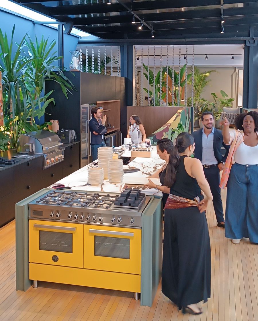 Inspirado nas cores, texturas e sabores do Brasil, o ambiente traz uma paleta que traduz a essência da brasilidade com sofisticação: o verde remete à exuberância da Mata Atlântica; o terracota evoca o solo artesanal e a terra firme do país; e o amarelo ouro representa a energia e a luz características do Brasil.