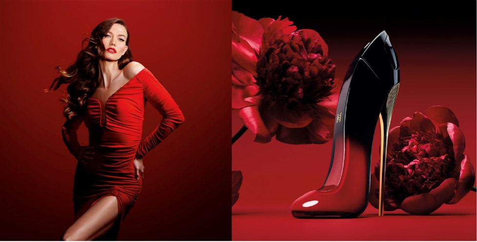Uma mistura âmbar, frutada e floral com um vício irresistível, a mais nova Good Girl chega com novo salto alto especial degradê vermelho a preto, com toques de ouro cintilantes.