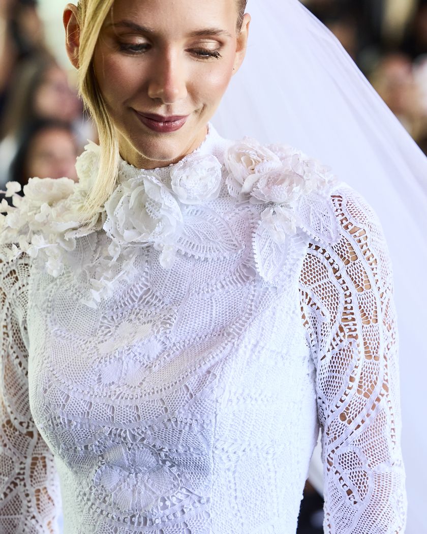 As rendas, assinatura da Martha Medeiros, aparecem em diferentes versões: da francesa à renascença, passando pela delicada chantilly, em composições que equilibram romantismo, sofisticação e modernidade.